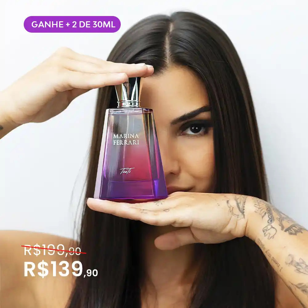 São 2 fragrâncias Marina Ferrari 30ml + 2 fragrâncias Marina Ferrari NUIT 30ml + Brinde Oficial do Barcelona